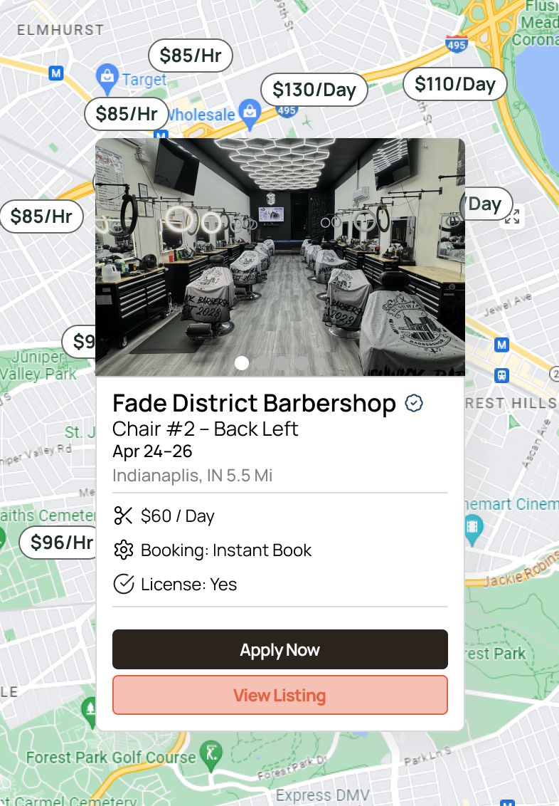 • ShearShare supported chair rentals — not short-term shifts