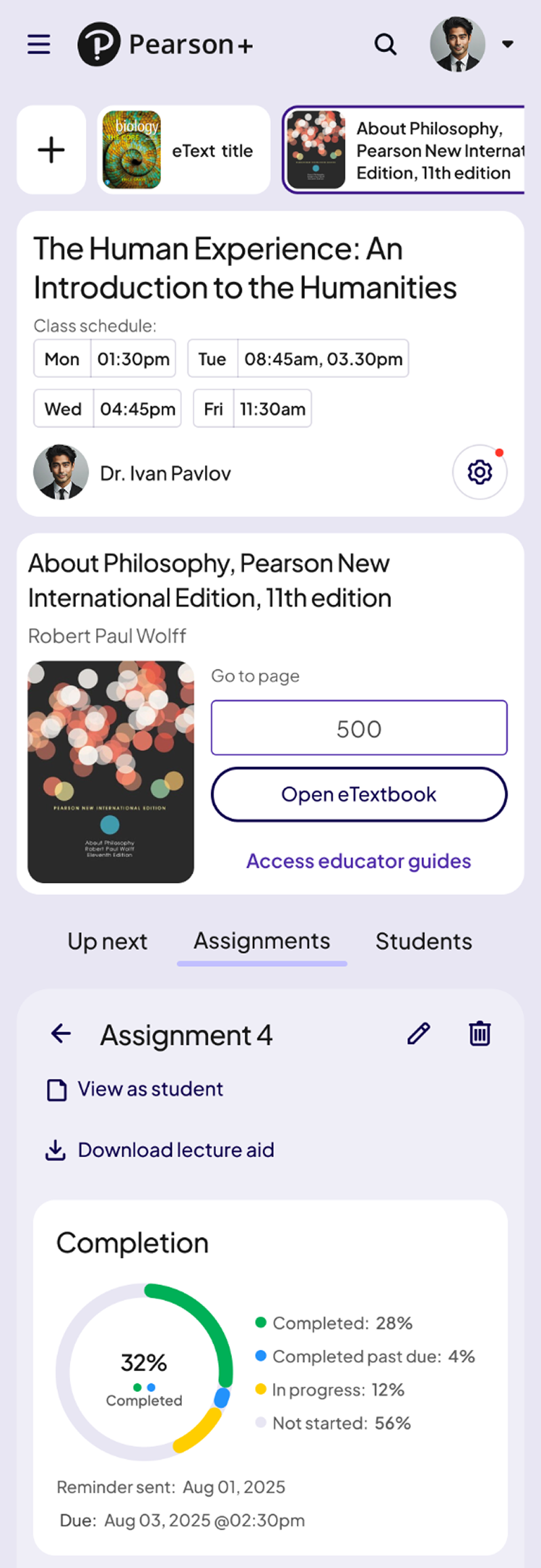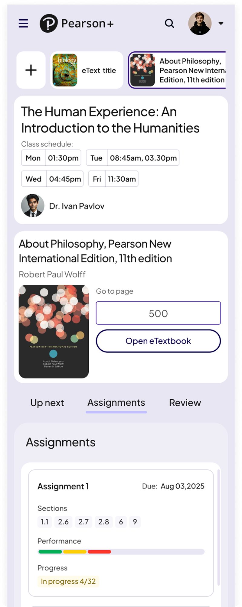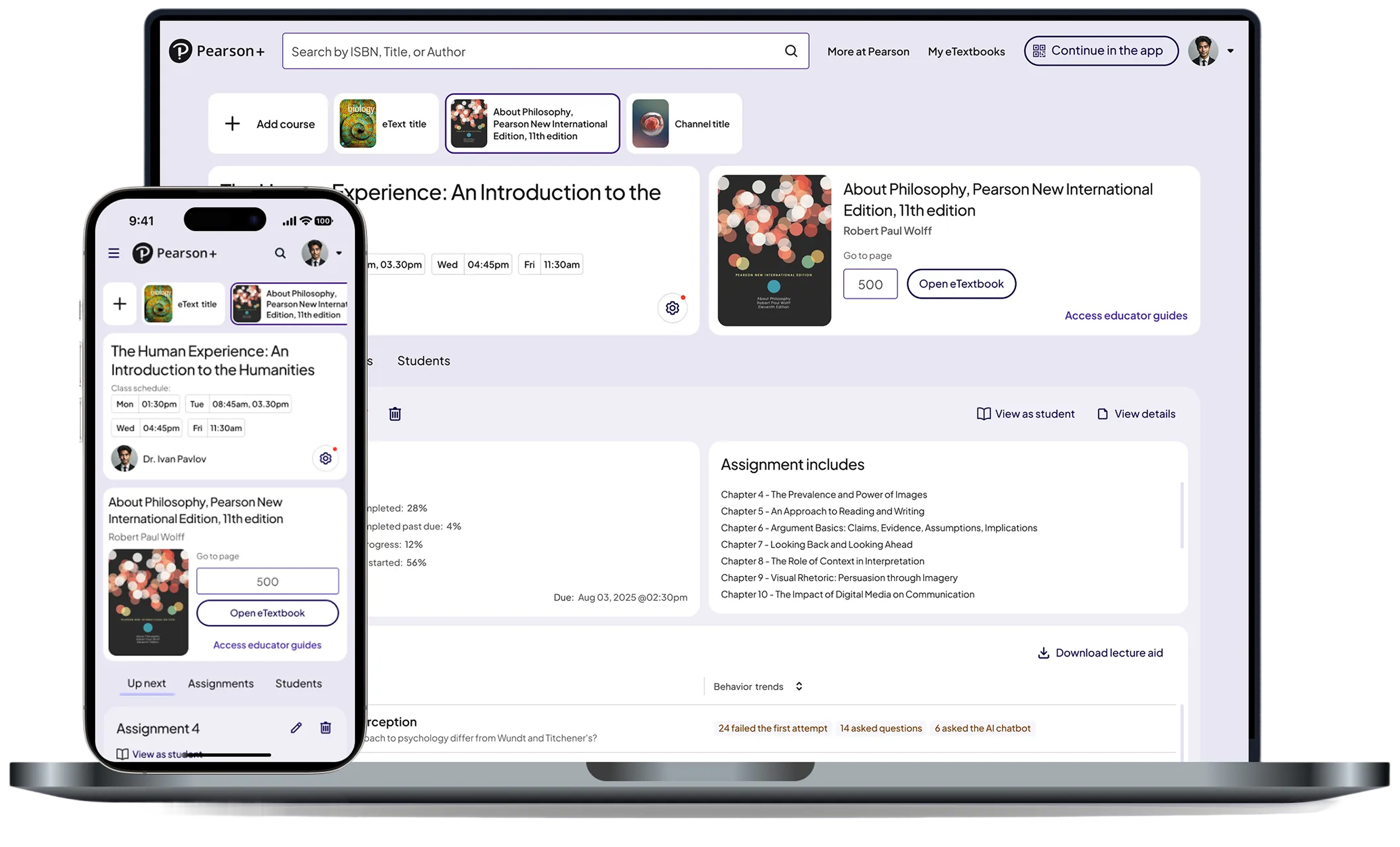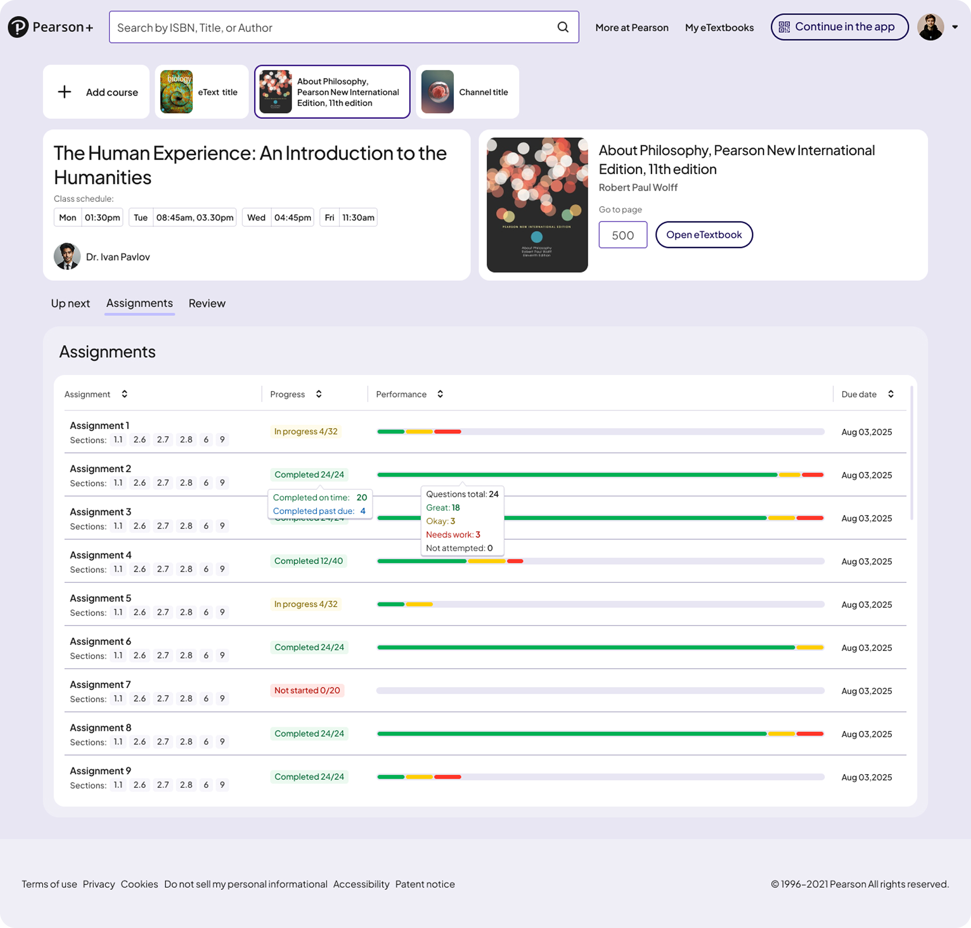 Pearson’s Assignable eText (AeT) product provided strong assessment and reading experiences, but lacked a dedicated space for students and educators to understand performance, progress, and assignment trends.