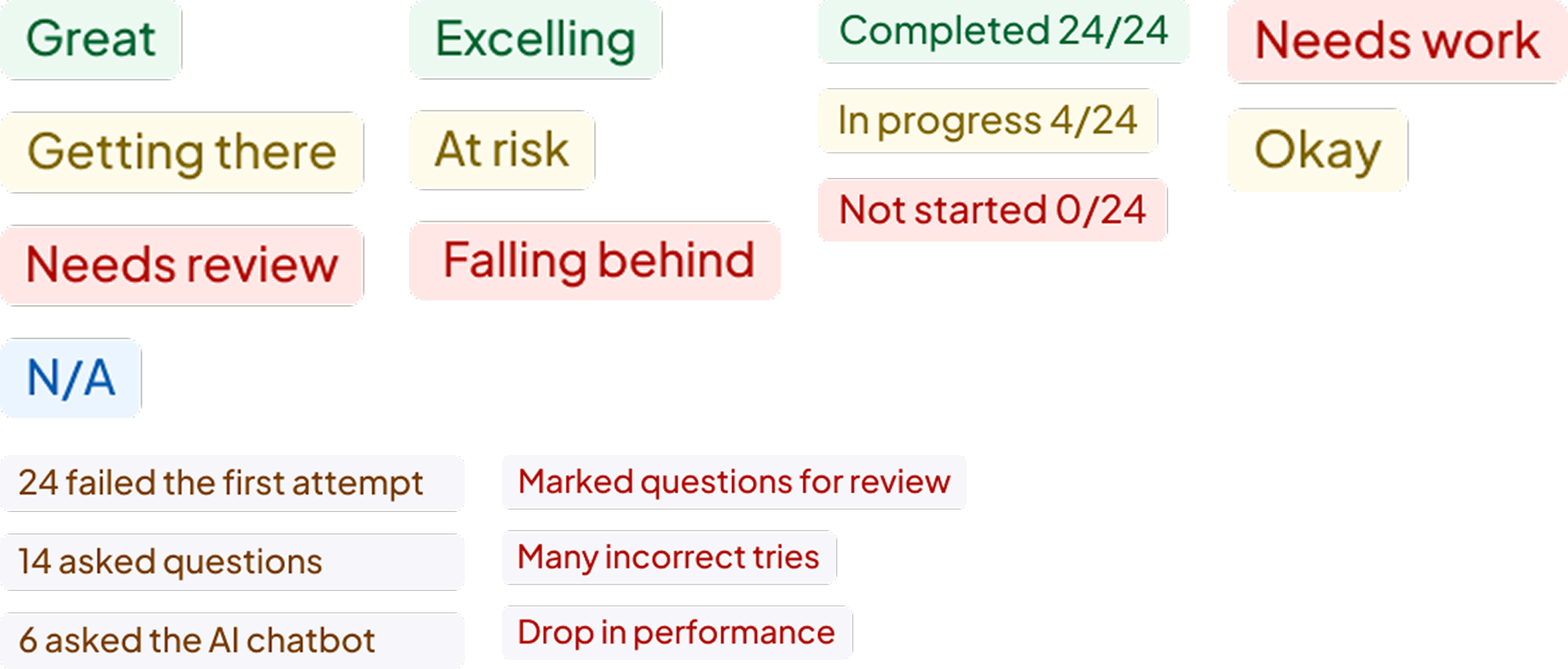 Automated alerts highlight meaningful shifts in engagement or performance. These notifications gave educators early visibility into drops in progress and allowed timely intervention.